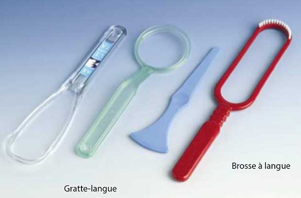 Fig 3 : Différents moyens d’hygiène de la langue (7). |