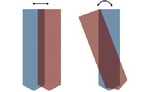 ![]() Fig. 12: Mesure du déplacement par technique directe. La position prévue et la position placée sont superposées (13).